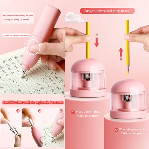 Pencil Electric Pencil Sharpener & Eraser with Vacuum Cleaner & Replacement Blades
