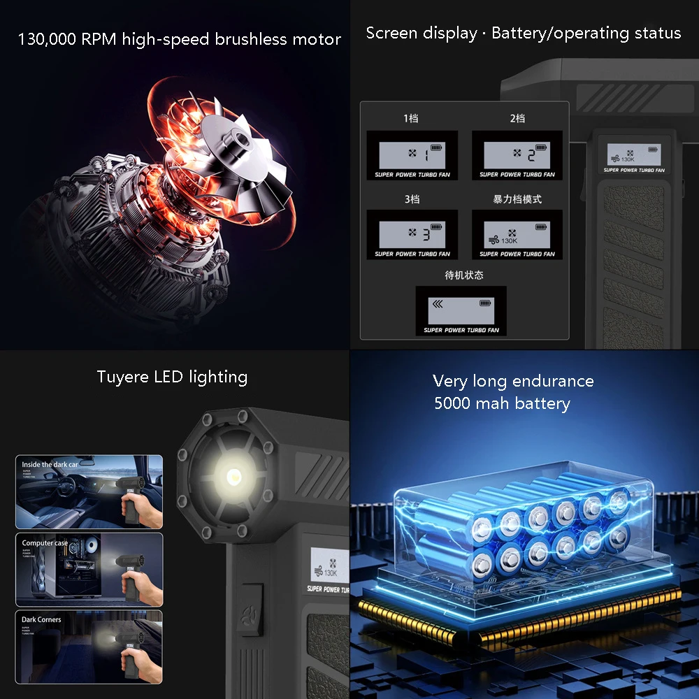 160000RPM Turbo Jet Fan Electric Blower:Complimentary car vacuum cleaner heads