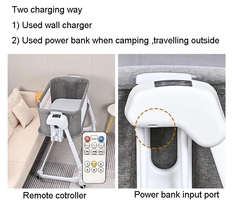 Adjustable height bedside sleeper crib with remote control rocking crib electric 1 sales