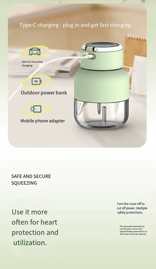Blender Cup Electric Juicer Mini Portable Automatic Juicer Cup for Outdoor Sport Dual Use Water Bottle