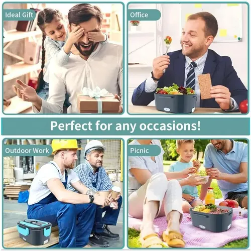 Electric Lunch Box with Fork Spoon & Insulated Bag, Quick Heating Lunch Boxes