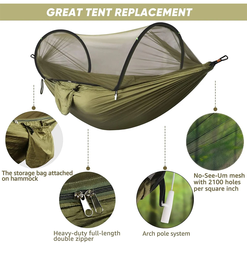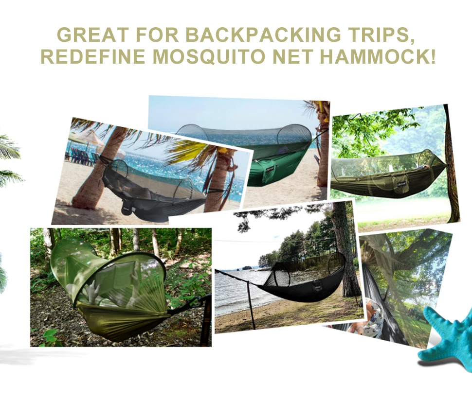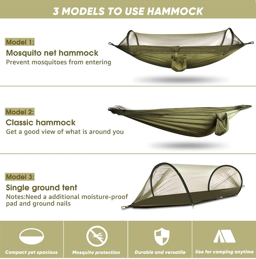 Large Outdoor Mosquito Net Hammock, 3-in-1 Waterproof Camping Hammock
