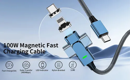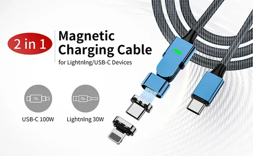 PD100W 2M Fast Charging 2-in-1 180° Rotation Magnetic Charging Cable For Iphone,Type C Devices