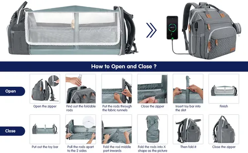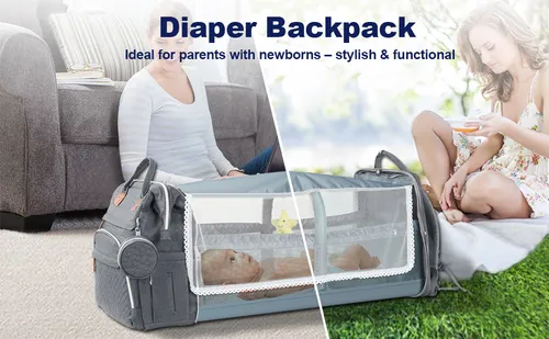 Portable Baby Crib, Foldable Mommy Bag Waterproof Diaper Bag with Mosquito Net