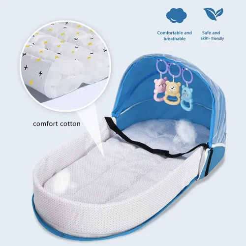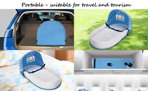 Portable Baby Crib, Foldable Outdoor Diaper Bag with Mosquito Net & Baby Lounger Mattress