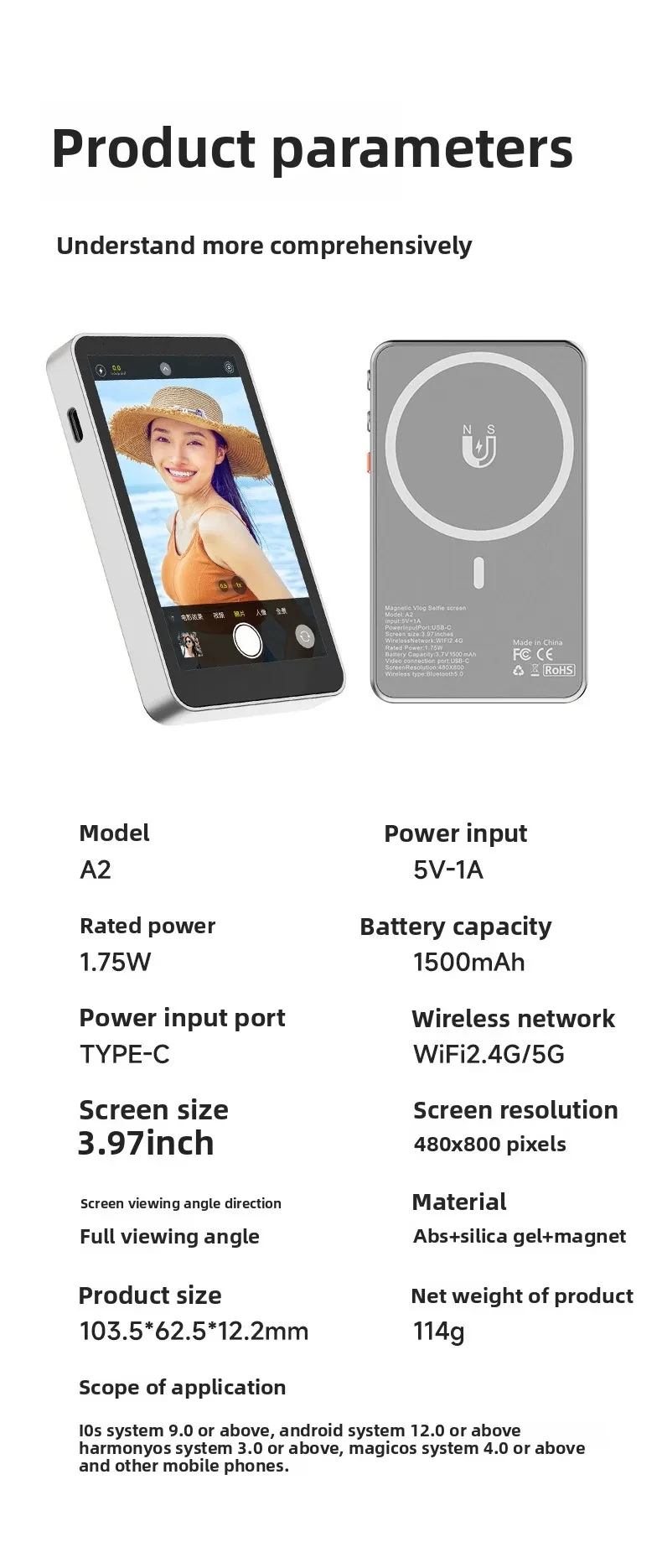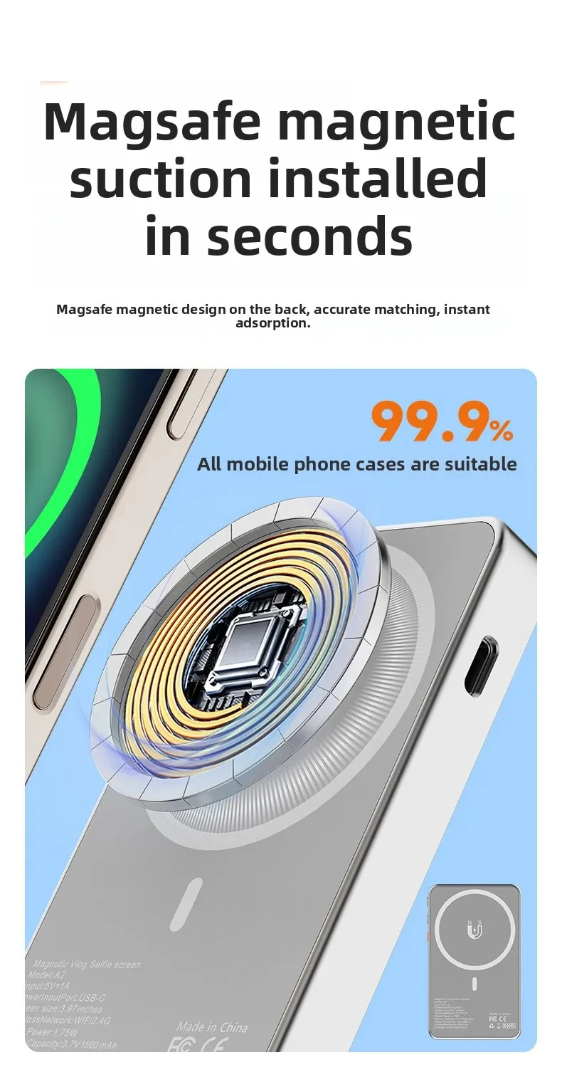 Vlogmate Mini Phone Vlog Selfie Monitor Screen, Phone Holder Clip Mount for Rear Camera Selfies Vlogging Live TikTok,Selfie Screen Compatible with iPhone Back Camera Monitor Screen